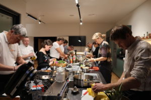 A l’issue de la séance, les membres de la Commission ont eu la grande joie de s’adonner à une activité culinaire accompagnés de deux chefs des Cinq Sens. L’expérience fut très sympathique, dans un cadre magnifique entourée de professionnels accueillants. Merci à l’équipe des Cinq Sens pour ce beau moment de partage!